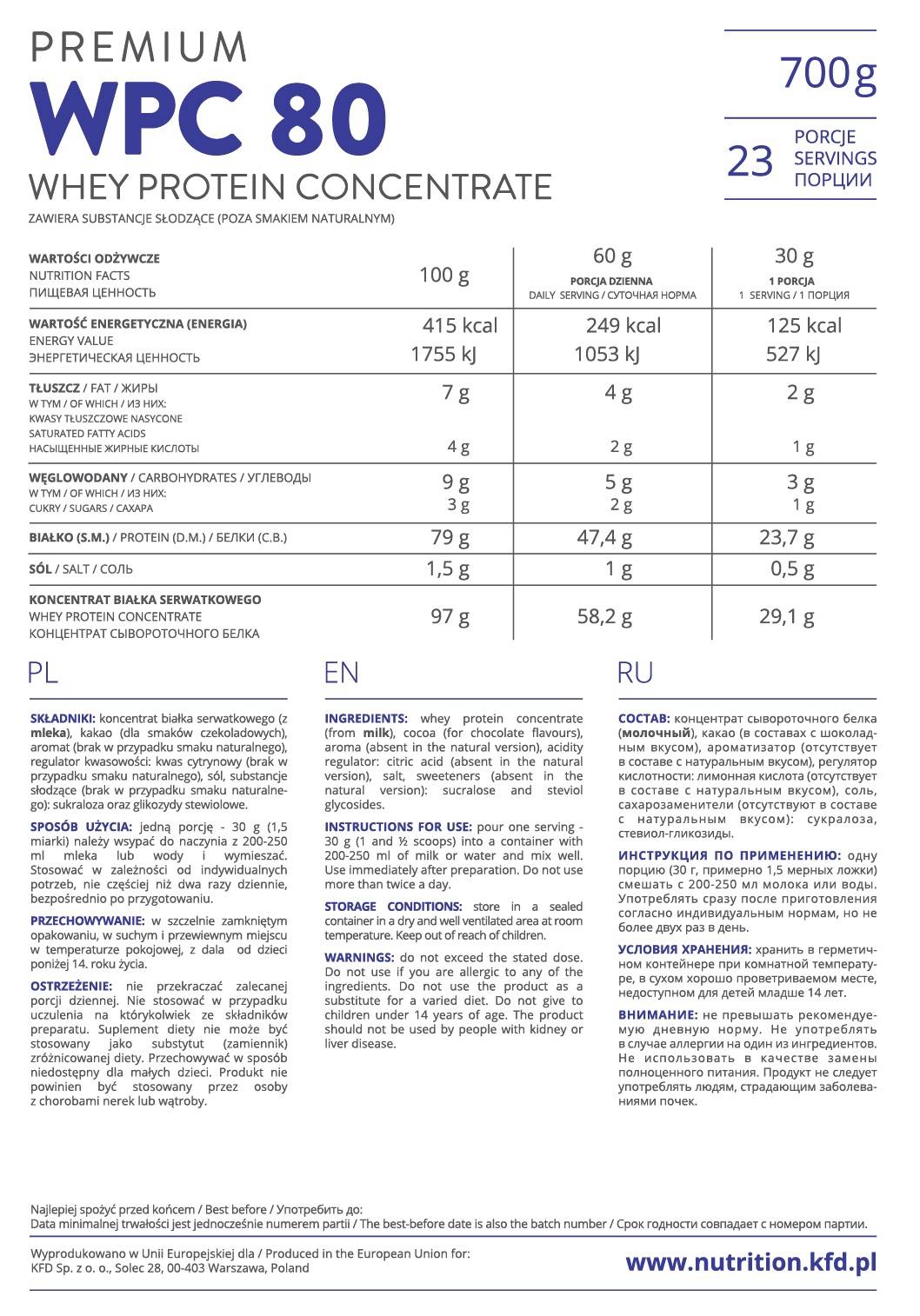 Premium WPC 80 Powder 700 гр | KFD Nutrition