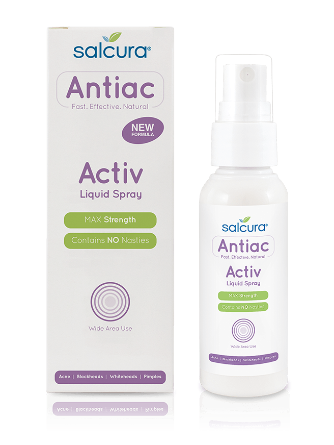 Antiac Activ Liquid Spray на Salcura е интензивна формула за справяне с умерени до тежки форми на акне по лицето и тялото.