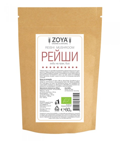 - Био Рейши на прах 60 гр от ZOYA на топ цена има антиоксидантно действие