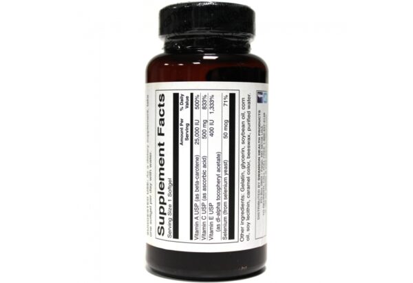 Фактори на околната среда като замърсяване на въздуха, тютюнев дим, ултравиолетова радиация, мазнини и тежки упражнения могат да произведат в тялото Ви нестабилни вещества, наречени свободни радикали, които могат да увредят здравите Ви клетки и да доведат до отслабено имунно здраве. Swanson разработиха ACES Витамини A, C, E и селен 60 гел-капсули, за да Ви осигурят антиоксиданти, които Ви помагат да се предпазите от отрицателните ефекти на тези вредни свободни радикали. Всяка доза осигурява 25 000 IU витамин А, 500 мг витамин С, 400 IU витамин Е и 50мкг селен, група хранителни вещества, за които изследванията са показали, че са по-ефективни, когато се вземат заедно. Комбинирани, те осигуряват високо активен антиоксидантен комплекс, който помага да защитите тялото си и насърчава здравословната функция на имунната система!