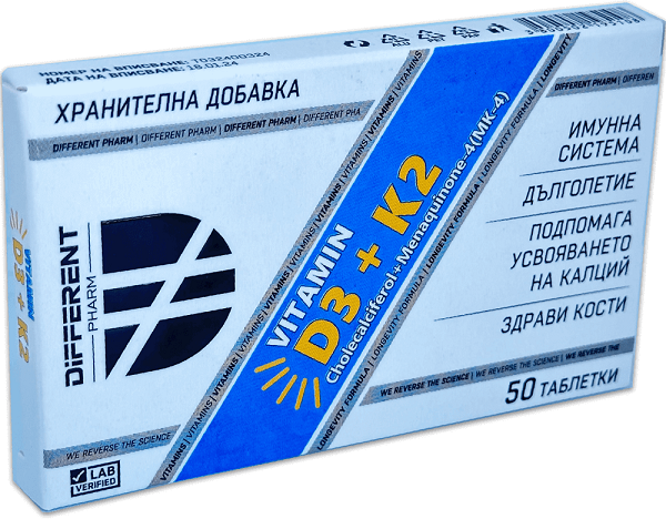 Vitamin D3 + K2 50 таблетки от Different Pharm – подобрява здравето на костите и сърдечно-съдовата система