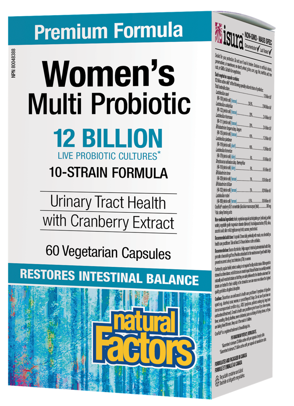 Представете си, че съчетавате силата на страхотен пробиотик с потенциала за борба с инфекциите на концентрат от червени боровинки. Women's Multi Probiotic 12 млрд. CFU 60 веге капсули на супер цена от Natural Factors съдържа комбинация от десет вида пробиотик и минимум 12 милиарда активни клетки на капсула. Съдържа ключовите щамове Lactobacillus и Bifidobacillus, които се срещат естествено в женското тяло, което го прави идеален да помогне на жените да поддържат нормален баланс на здрава чревна и вагинална флора.