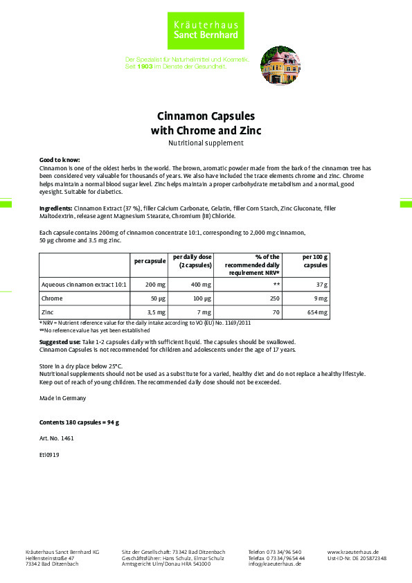 Как действа Cinnamon with Chrome and Zinc 180 капсули на Sanct Bernhard?