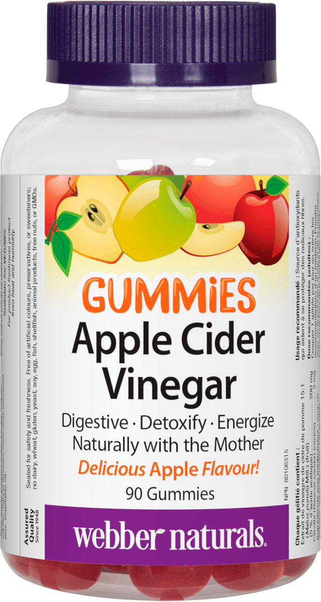 Gummies Apple Cider Vinegar 90 таблетки на ниска цена от Webber Naturals е изцяло натурален продукт, който ще Ви дари с всички полезни свойства, които този еликсир притежава. Той ще Ви снабди със здраве и сили, за да се почувствате по-енергични и с желание за живот.