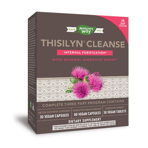 Тисилин Клийнс Минерална програма Комплект от Nature's Way е 15-дневна програма, която насърчава здравословното елиминиране на токсините и е на страхотна цена. Специално балансирана за почистване на червата, черния дроб, жлъчката, храносмилателната система, пикочните пътища и дори премахване на камъни в жлъчката. Тази програма съдържа набор от известни с ползите си съставки като: магнезиев хидроксид, артишок, куркума, магарешки бодил, фибри, глухарче, трифала и др. Всички съставки са разпределени в три фази, които комбинирани пречистват целия организъм и извеждат токсините от него леко и не слабително.