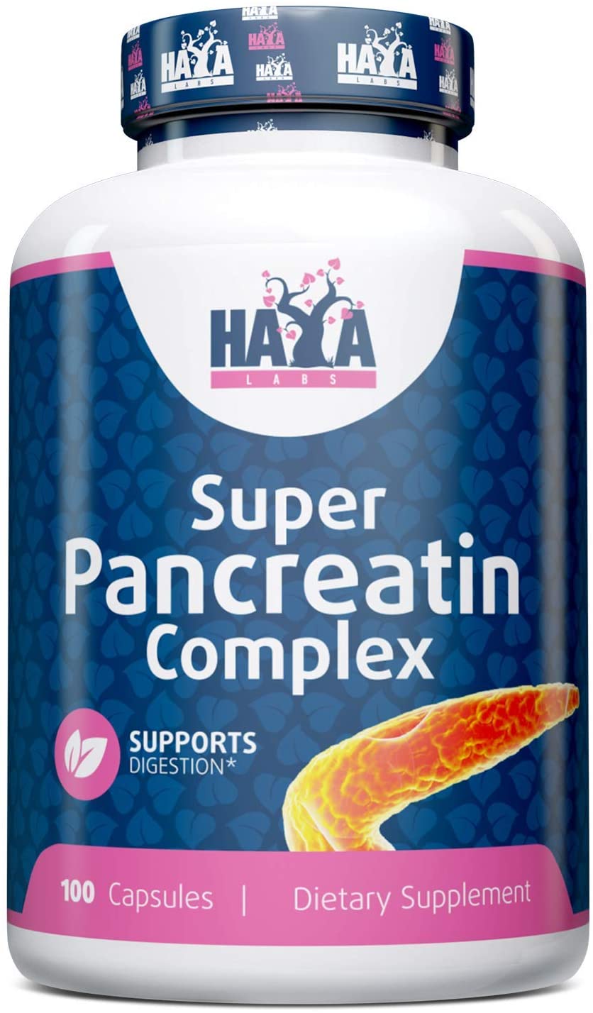 Super Pancreatin Enzymes 100 капсули от HAYA LABS на уникална цена e комплекс от ензими, подпомагащи по-доброто усвояване и разграждането от човешкия организъм на въглехидрати, мазнини и белтъчини. Изключително добре се приема и цени от спортистите, в чийто режим на хранене присъстват големи количества месо и месни продукти. Ензимите амилаза, протеаза и липаза допринасят за цялостния процес на правилното обработване на храната, като работи за подобряване и облекчаване процесите на храносмилателния тракт, без да му вредят.