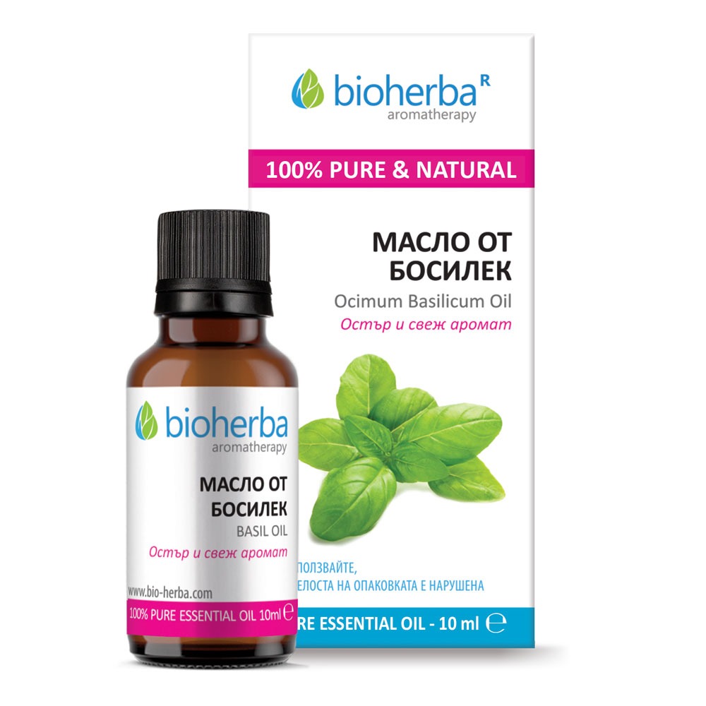 Basil Oil 10 мл на ниска цена от Bioherba е изцяло натурален продукт, който притежава всички необикновени свойства на босилека. В ароматерапията се смята, че вдишването на аромата на етерично масло от босилек (или абсорбиране на етерично масло от босилек през кожата) предава съобщения до мозъчна област, участваща в контрола на емоциите Ви.