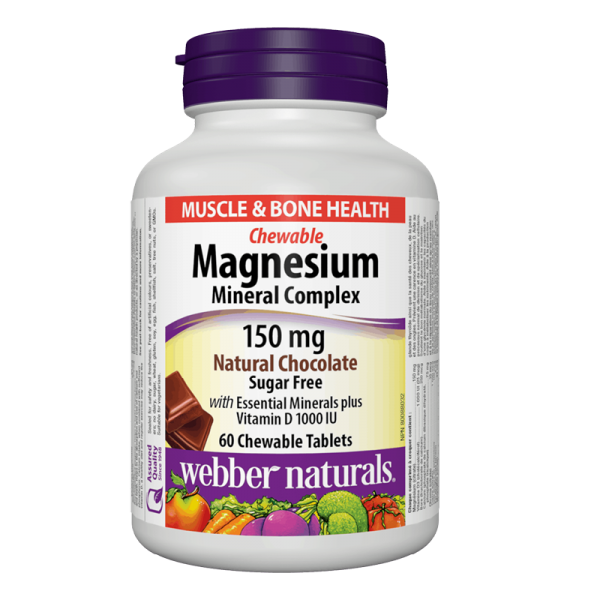 Magnesium Mineral Complex Chocolate Flavour 150 мг 60 дъвчащи таблетки от Webber Naturals – укрепва костите, подобрява мускулната функция и поддържа здравето на сърцето
