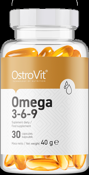 Омега-3-6-9 обхващат предимствата, предоставени от всички отделни мастни киселини, и осигуряват балансирано количество и на трите киселини. Omega 3-6-9 30/90/180 капсули на ниска цена от OstroVit помага за поддържане на здравословни нива на холестерол, поддържа кожата здрава, подобрява настроението, мозъчната функция, поддържа сърдечно-съдовото здраве и здравословния растеж и развитие.