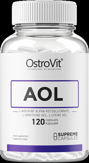 AOL (ААКГ, Орнитин, Лизин) 120 капсули на невероятна цена от OstroVit е чудесна хранителна добавка, съдържаща три есенциални аминокиселини: L-аргинин алфа-кетоглутарат, L-орнитин и L-лизин. Уникалната формула ще подпомогне растежа на здрава мускулна маса, увеличаването на синтеза на растежен хормон (GH) и подобрява формирането на тъканите, които съставят структурата на мускулите.